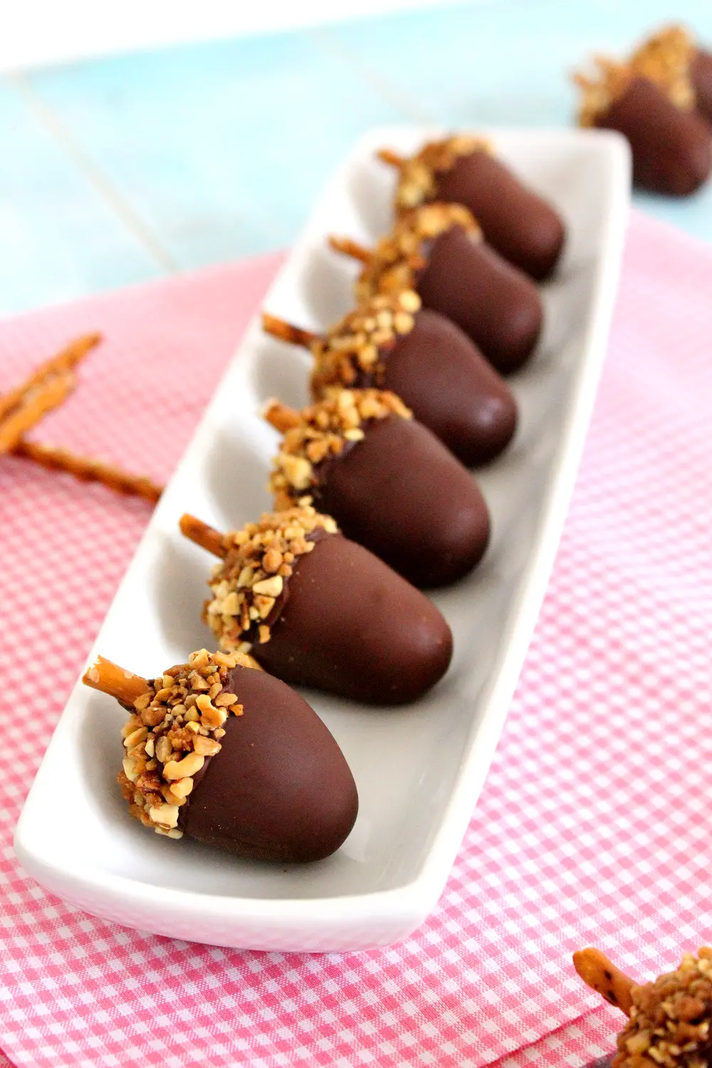 Comer estos cake pops de chocolate es una sensación extraña, ya que su sabor es a avellana, ¡Pero sin duda está superdelicioso! Una receta de cake pops para hacer con los más peques de la casa, ya que no necesitaréis molde. Además seguro que os reís mucho al ver la forma final de cada bellota. No hay nada mejor que jugar con la comida, porque como dice mi amiga y blogger Sandra Mangas, con la comida ¡sí se juega! Con estos postres fáciles nuestros peques se lo pasarán en grande. Además podemos usarlos para decorar las mesas de los cumpleaños.