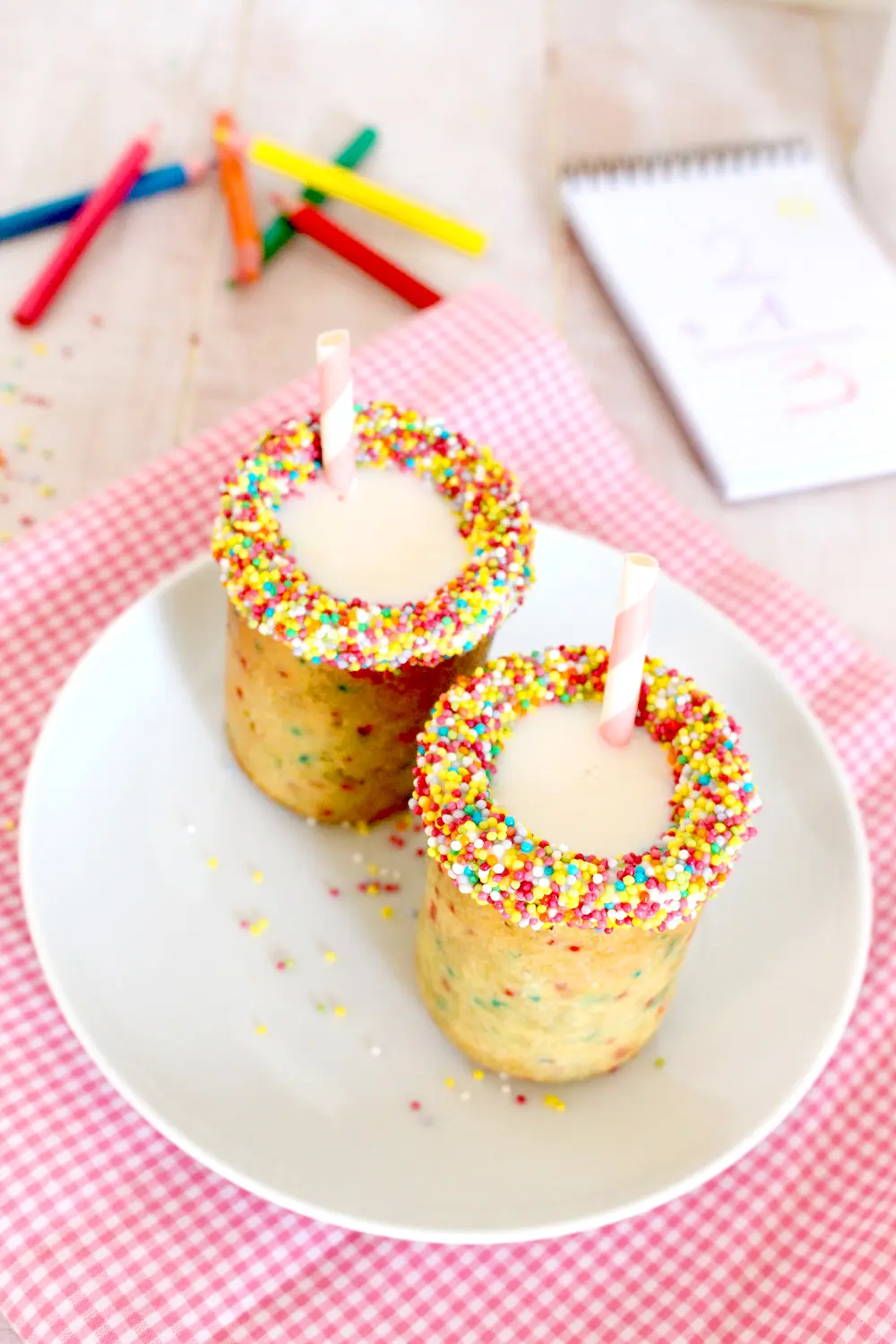 La receta de hoy trata de una receta de cookie tazas con confeti de azúcar que les da ese colorido tan apetecible. Además, la «taza» está recubierta previamente con chocolate blanco por dentro quedando sellado y por lo tanto se pueden rellenar con cualquier líquido frío.