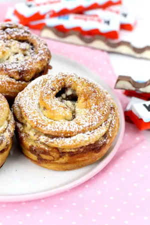 Si me seguís por Instagram, sabréis que el pasado viernes hice una encuesta el la que os daba a elegir entre 4 recetas con Kinder, y la mas votada fueron estos croissants de chocolate Kinder.