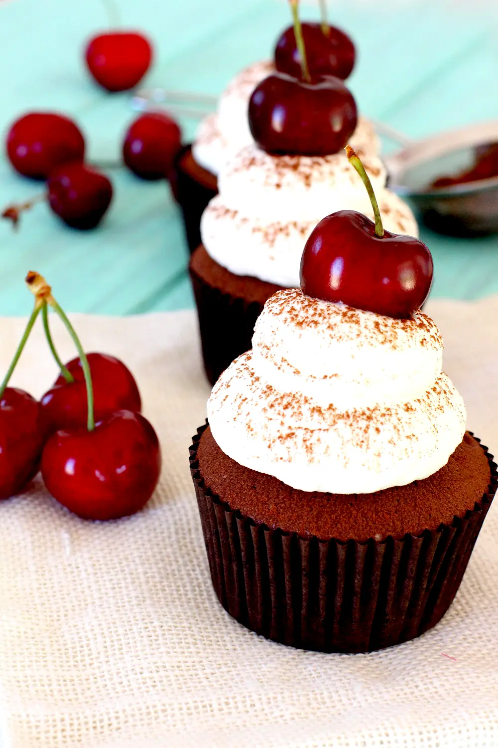 ¡Feliz San Juan a todos esos Juanes y Juanas que me siguen y me leen! Espero que todo el mundo hayáis disfrutado de las hogueras de San Juan, En Alicante es nuestra fiesta grande, ¡así que no me quejo! Y mejor no os cuento que tal me fue esta noche en las hogueras que degradaré mi imagen perdiendo credibilidad. Un día de fiesta buena al año no hace daño, ¿verdad?. Tenía muchas ganitas de presentaros esta receta de cupcakes de chocolate de Selva negra, es una versión cupcake de la famosísima tarta de Selva negra que a tantos y tantos nos hace perder la cabeza, aunque me das cualquier dulce que lleve la misma cantidad de chocolate que esta receta y pierdo la cabeza igual.
