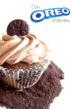 En estos cupcakes de Oreo se aprovecha tanto la galleta como la crema de las galletas Oreo y tanto en el frosting como en la masa del cupcake, haciendo un sabor único en 2 texturas totalmente diferentes. El bizcocho tiene una textura seca (característica de los cupcakes), pero el frosting le da la humedad que necesita para que sea realmente irresistible.