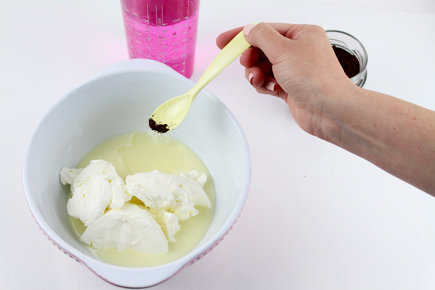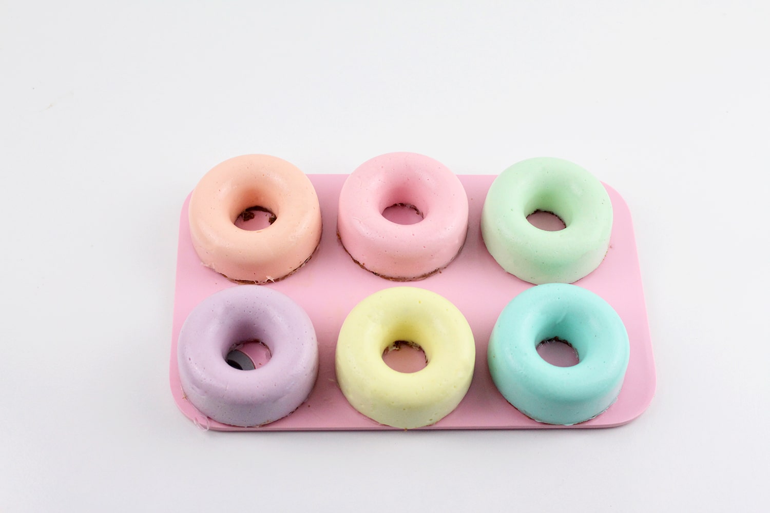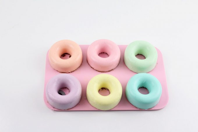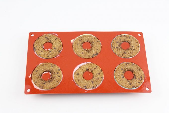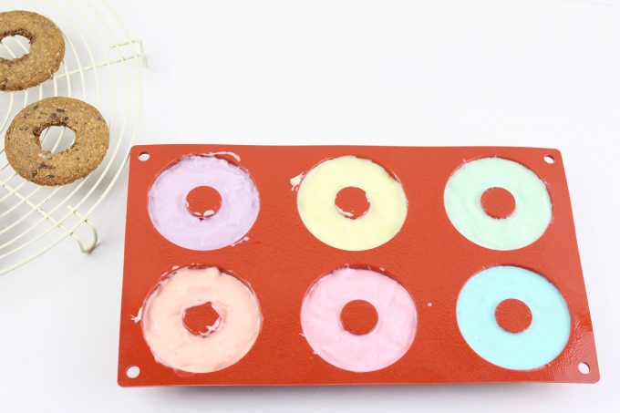 Para ello no necesitáis moldes, si tenéis el molde de donuts de silicona, mucho mejor. Pero podéis hacerlos en cualquier molde de silicona que tengáis, o incluso en vasitos.