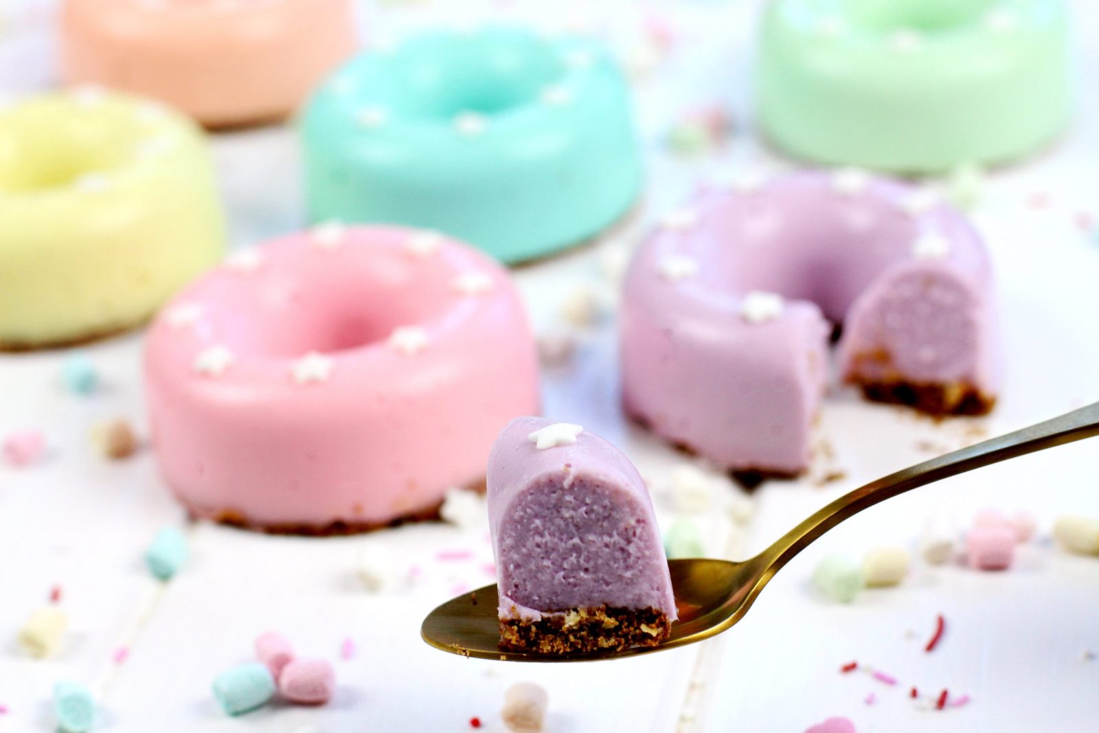 Estos donuts cheesecake con nubes son ideales para hacer ahora puesto que son sin horno, bien fresquitos y súper bonitos.