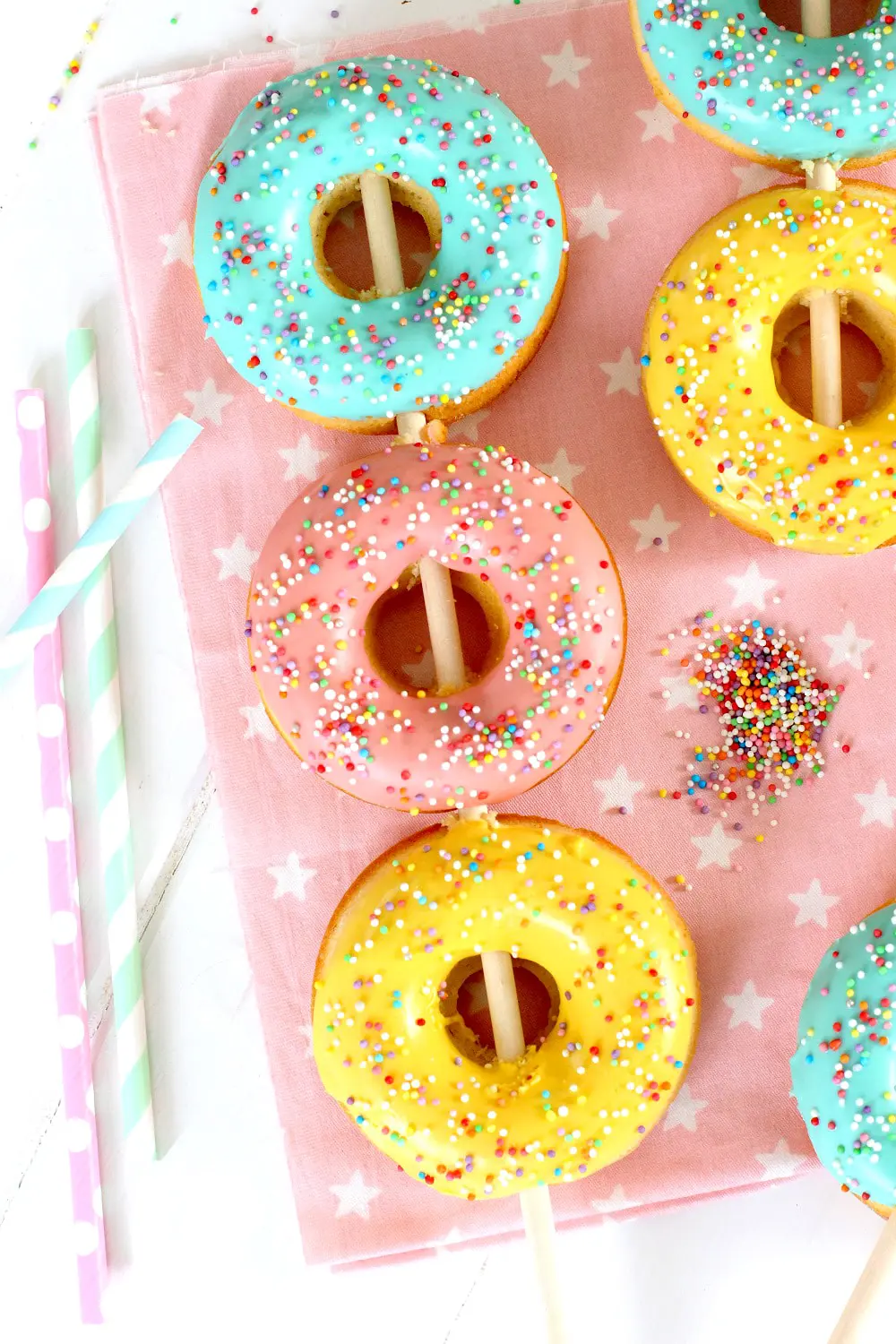 A los niños les llaman mucho los colores y los dibujos o formas de las cosas, por lo que estos donuts en forma de paletas son una auténtica pasada. Les van a chiflar.