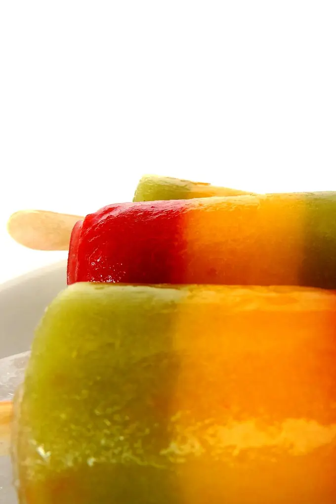 19. Y VOILÀ… ya tendremos listos nuestros deliciosos y refrescantes helados de fruta de tres sabores. ¡Eso sí son bien sanitos!!Foto de la receta de helado natural de frutas
