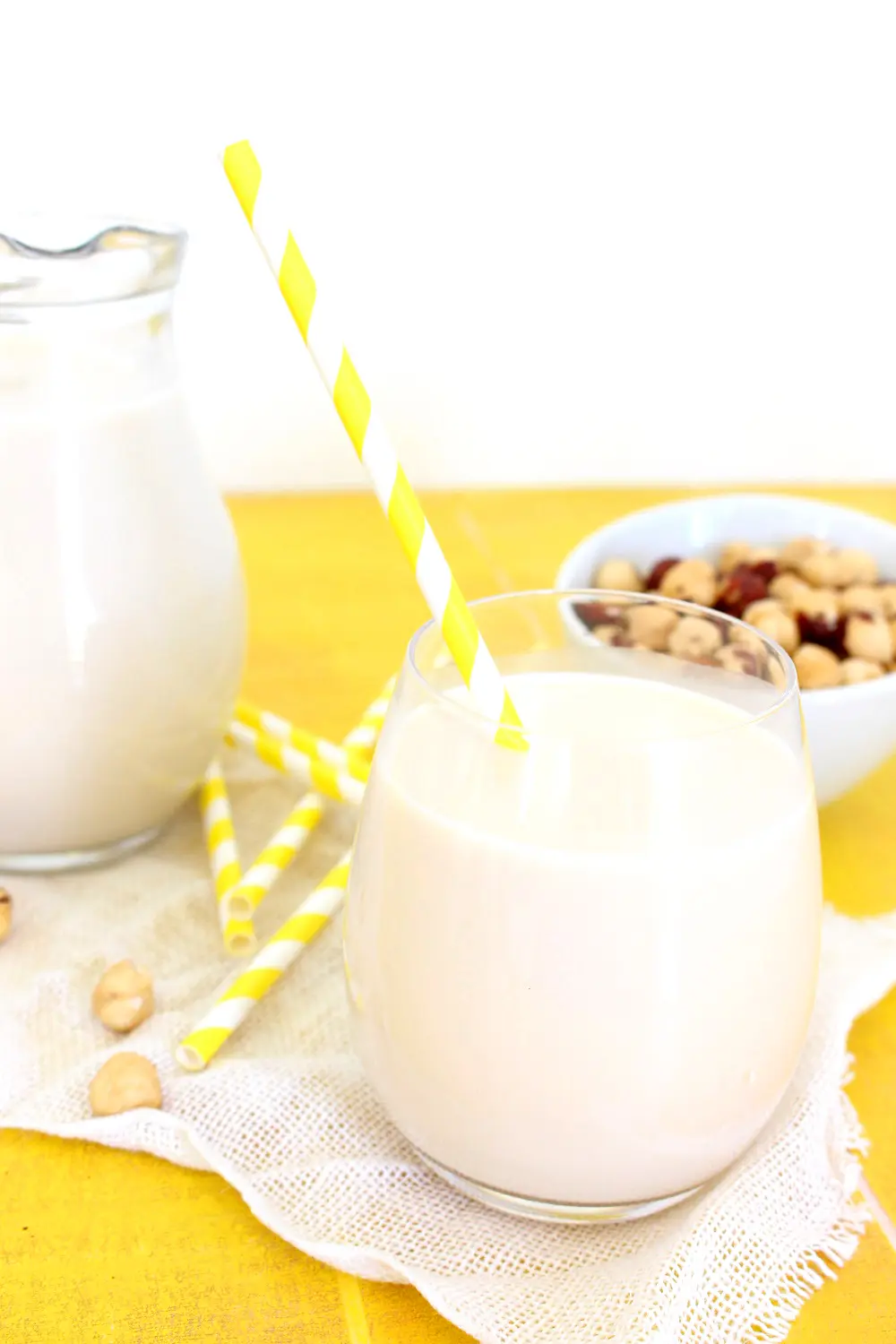 Esta receta de leche de avellanas yo la utilizo para añadirla a los bizcochos, para cocinar, para bebérmela bien fría… Da un sabor muy diferente y delicioso, también me gusta disfrutar de un vasito a media tarde bien fresquito. Incluso suelo mezclarlo con helado de chocolate y hacerme un batido.