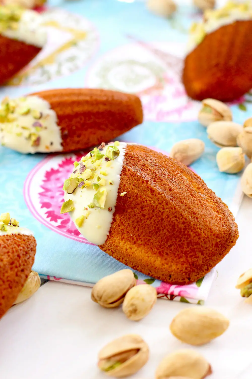 Receta de como hacer madeleines con chocolate blanco y pistachos - Receta de magdalenas francesas - Como hacer bizcocho esponjoso