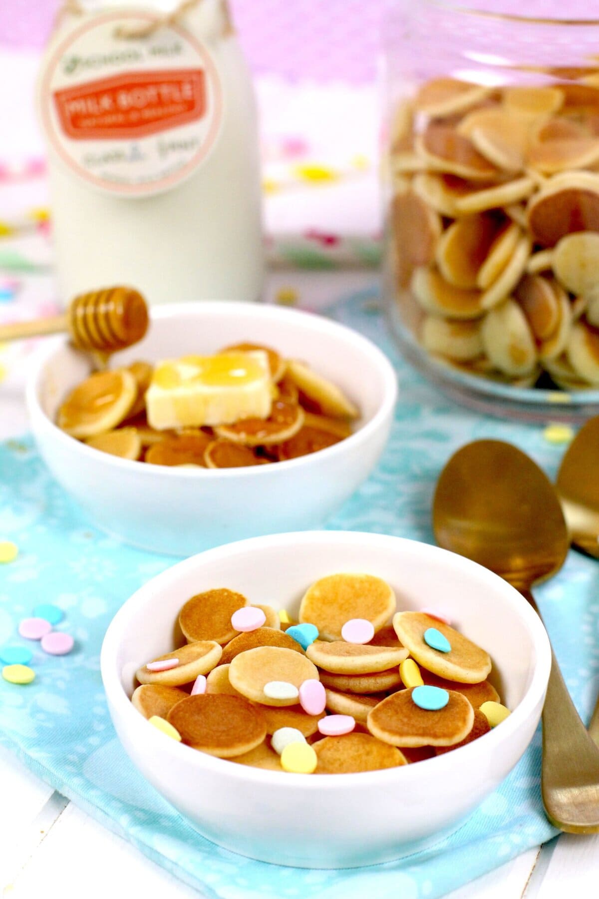 De momento podéis ir disfrutando de estos mini pancakes cereal, o también conocidos como mini tortitas americanas o tiny pancakes cereal.