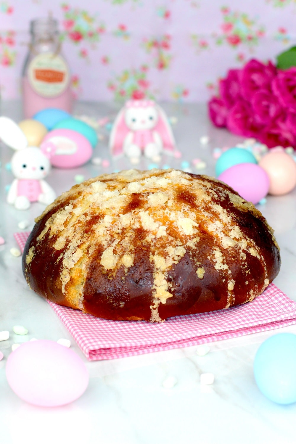Es una masa levada, tipo mona de pascua, pero no es una mona de pascua, ya que el proceso de elaboración es diferente y aunque no os lo creáis, se nota mucho la diferencia.