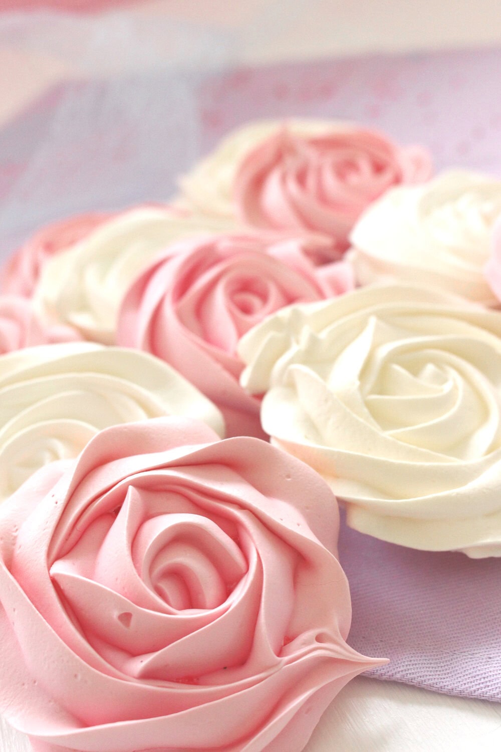 Así que como mi segunda flor favorita es la rosa, esa no me la pensé y he acabado dándole la bienvenida a la primavera con esta receta de Rosas de merengue duro.