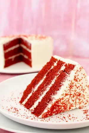 Creo que lo que más me atrae de la tarta Red Velvet layer cake es su color rojo, que en contraste con el blanco de la crema aún resalta más y genera en mí un efecto placebo impresionante cada vez que la degusto.